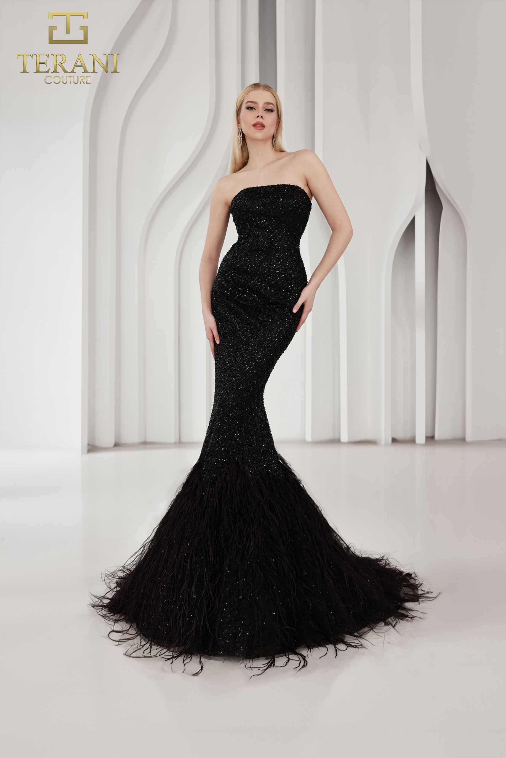 At Terani Couture, we offer a range of black bodycon dresses for prom, from short styles to long gowns, each featuring unique designs and intricate details.