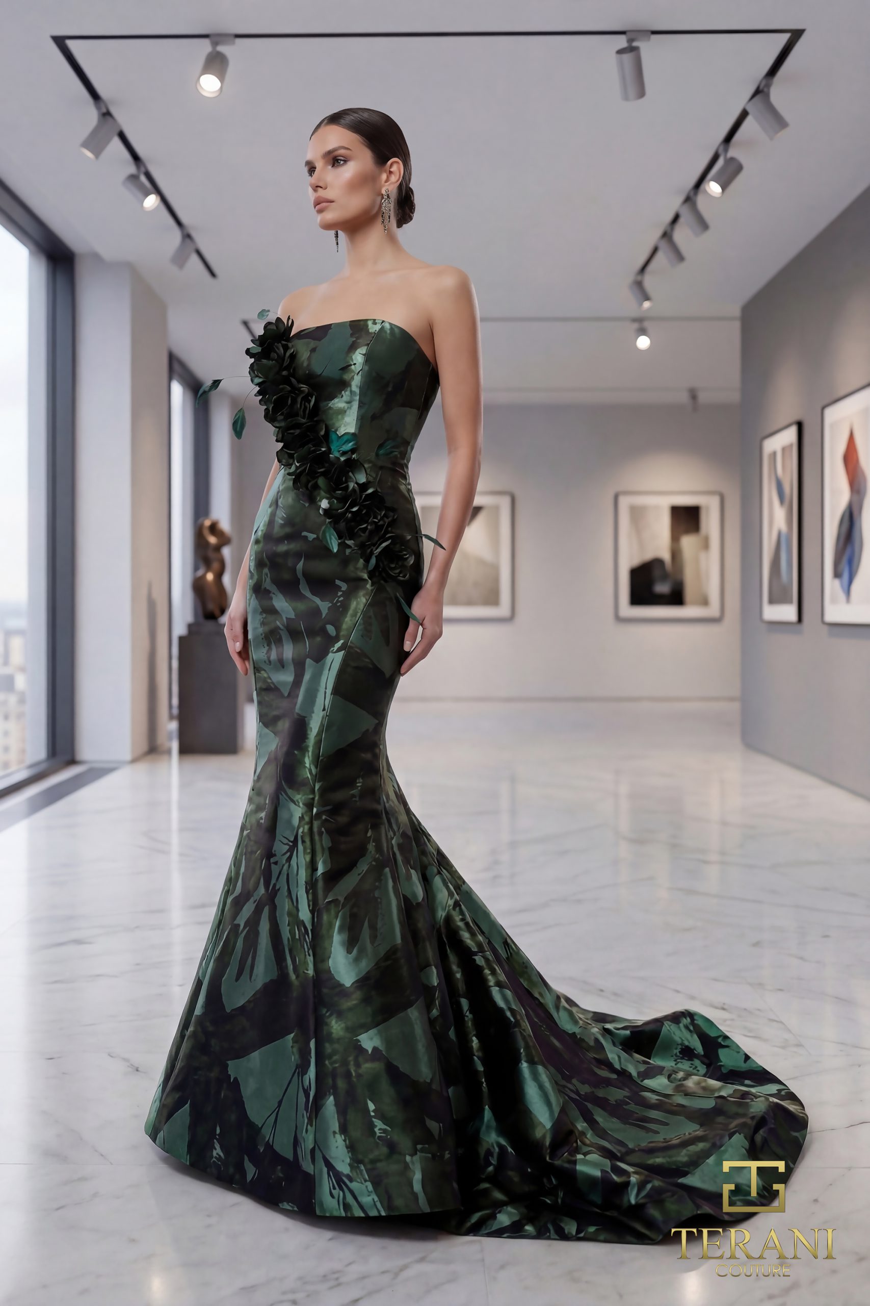 Strapless Heavy Printed Long Mermaid Dress – 1712P2536G