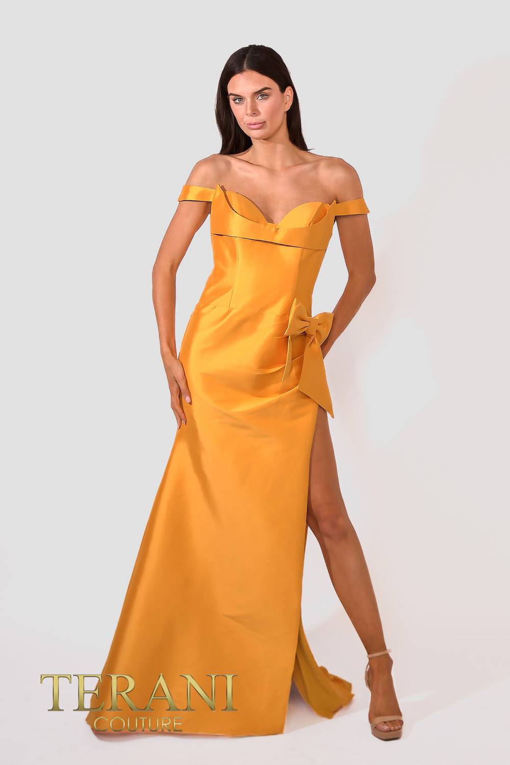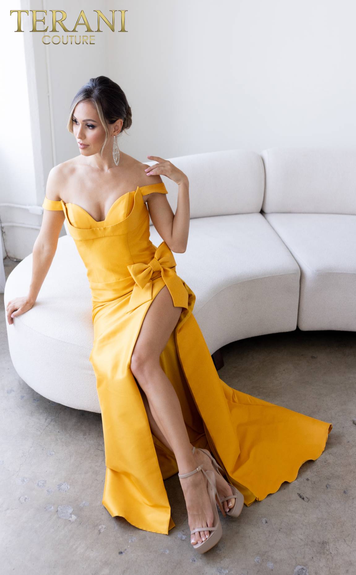 Elevate your evening with the alluring 241P2017 Trumpet Off-Shoulder Mikado Column Evening Dress, a true embodiment of sophistication. This mesmerizing gown is a must-have for those who desire an unforgettable presence. The off-shoulder neckline adds an air of timeless allure, while the sumptuous Mikado fabric offers a touch of luxury.