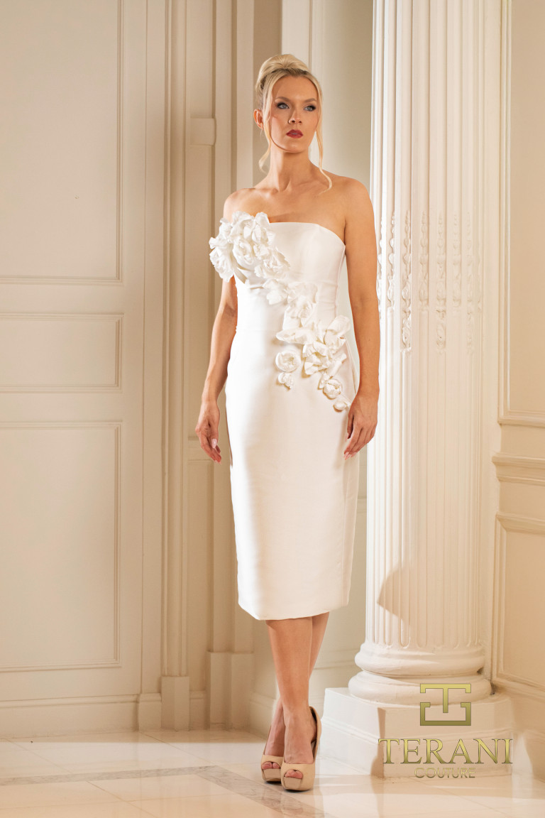 Overall Style: The dress strikes a balance between modern minimalism and a romantic, intricate design. Its simplicity in structure allows the floral embellishments to stand out, creating an eye-catching focal point. The color gives the dress a soft, feminine vibe, making it ideal for events such as cocktail parties, weddings, or upscale evening affairs.
