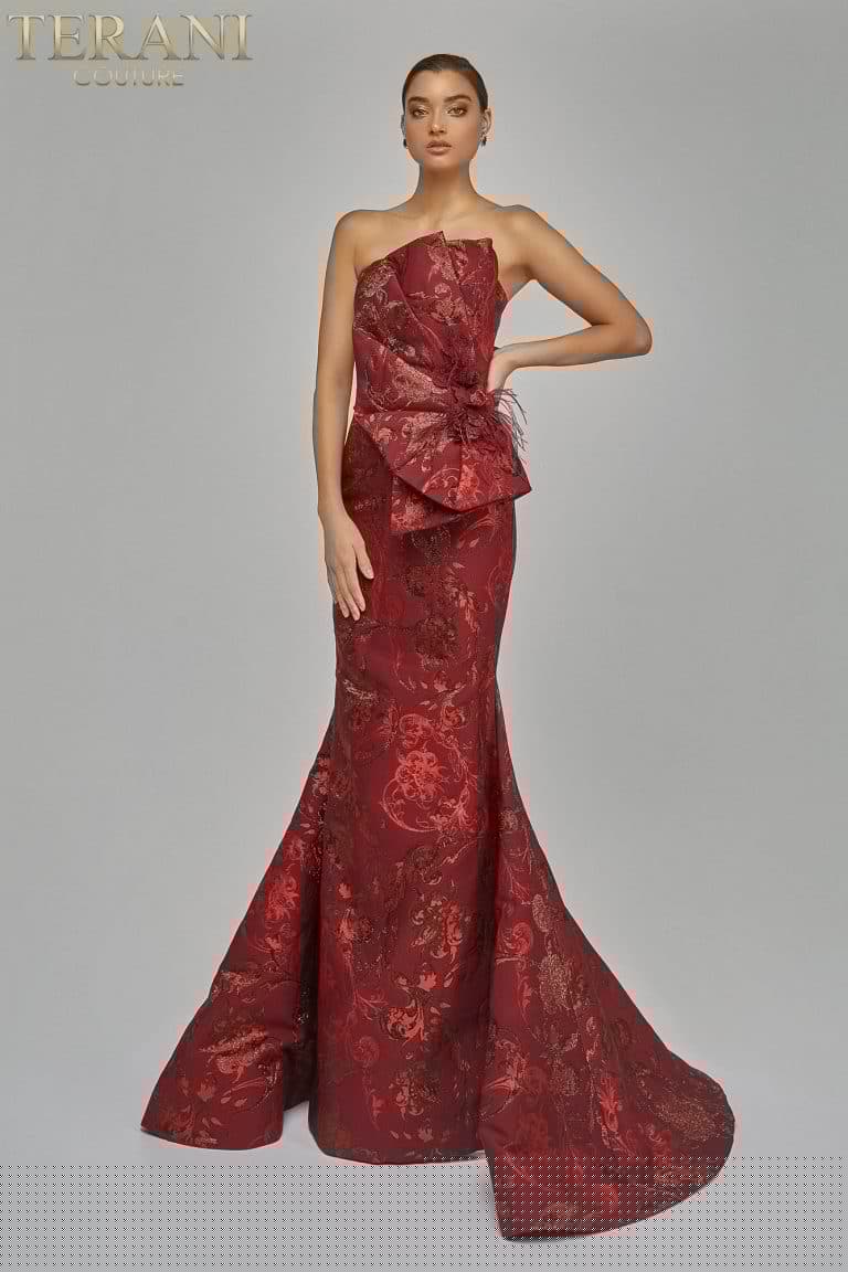 Dramatic Pleat Fan Jacquard Gown – 1921E0137