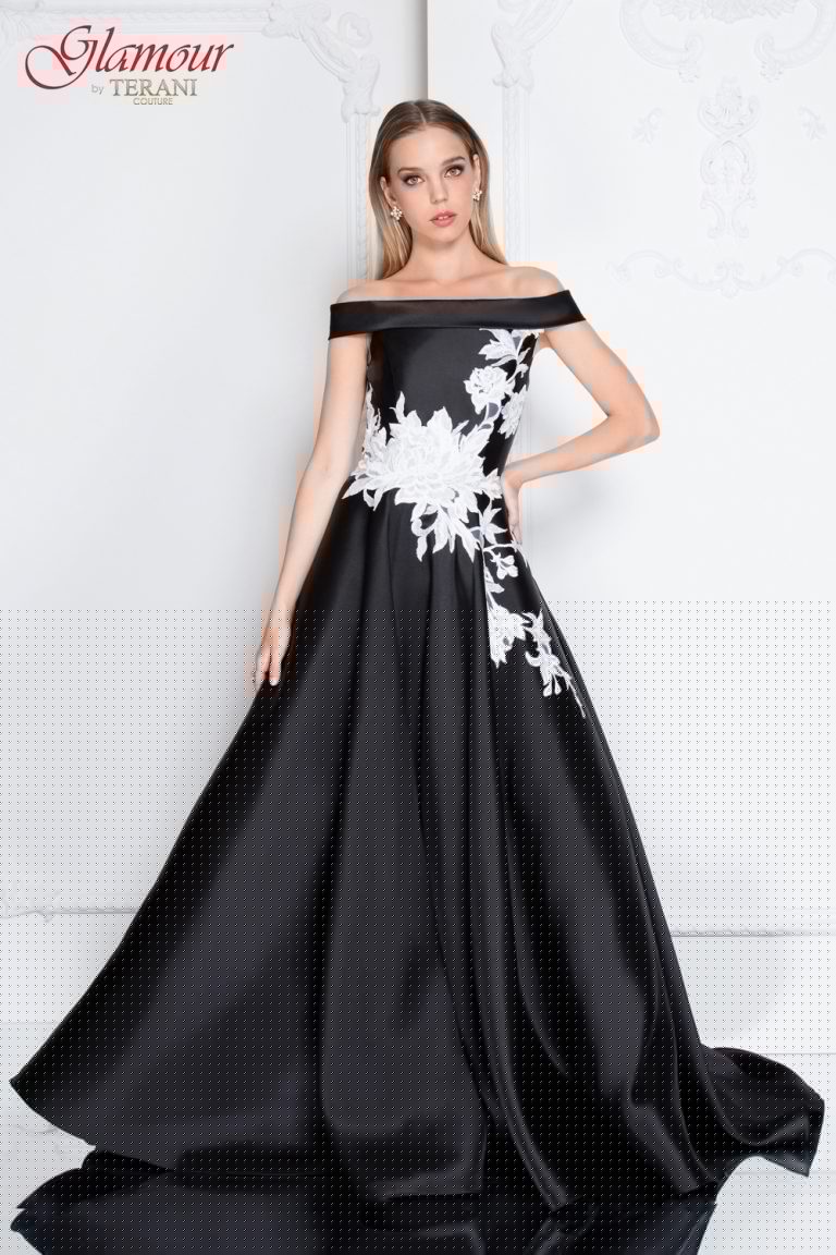 Off-Shoulder Straight Neck Embroidered Bodice Detail Long Ball Gown – 1813P5073G