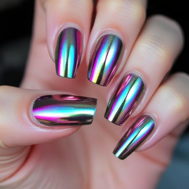 If you love bold over sweet, chrome nails are for you! This metallic trend offers silver, gold, or multi-chrome shades for a sleek and modern look.