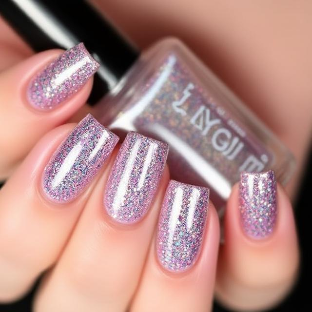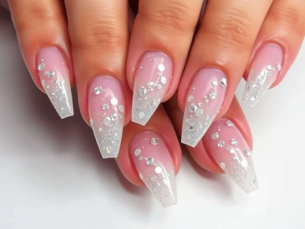 Apply a glossy neutral base and adorn your nails with shimmering crystals or rhinestones for a dazzling, light-catching effect.