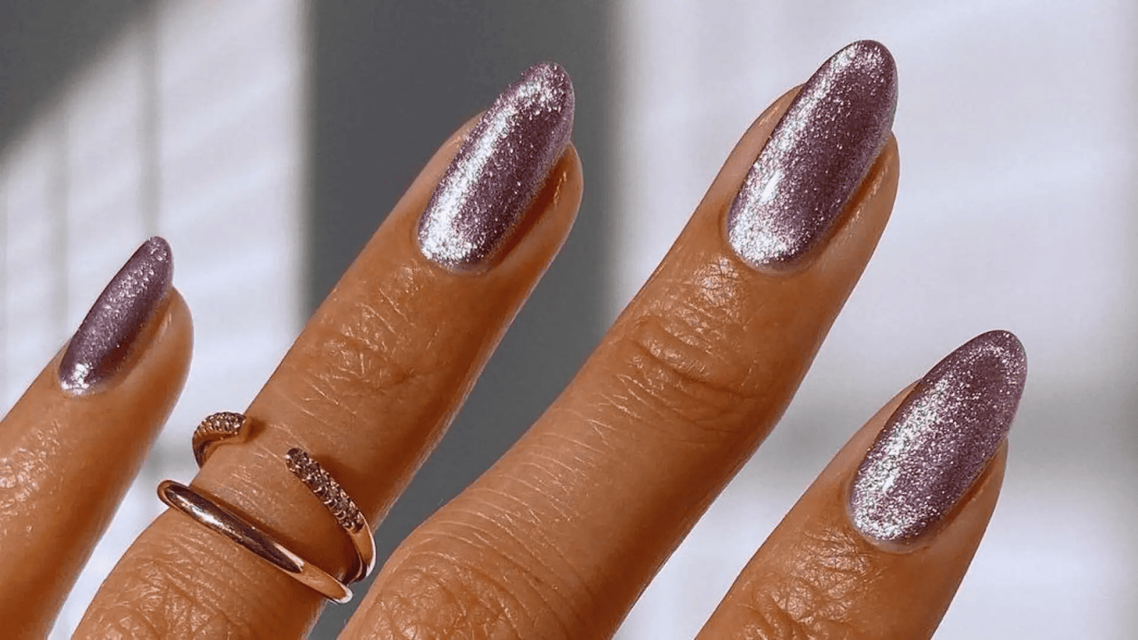 Steal the spotlight with sheen and luxury! These glitter-infused velvet shine nails are perfect for making a grand entrance.