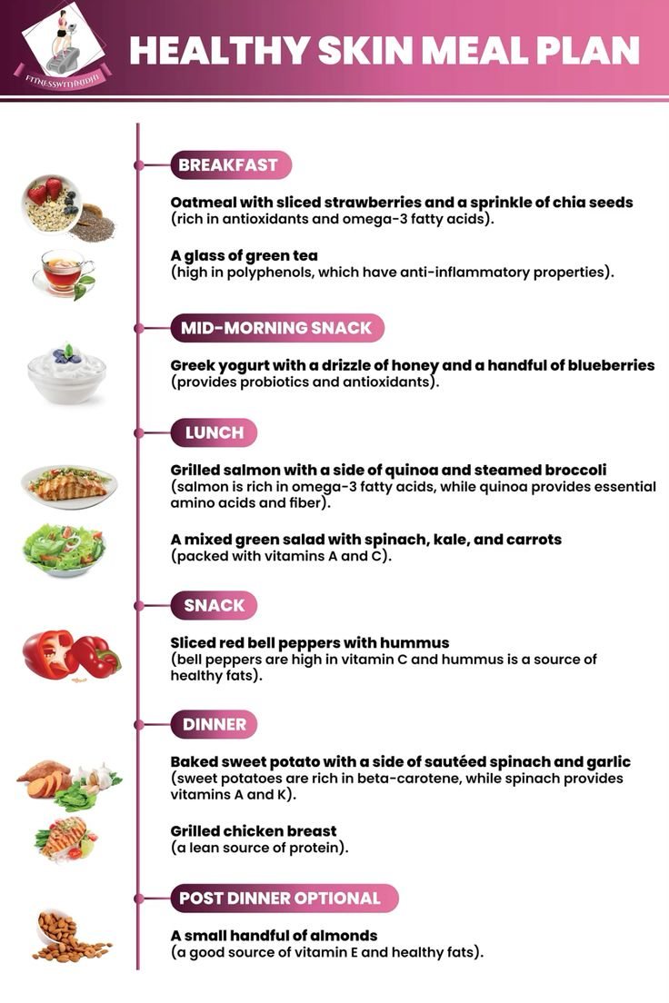 Besides exercise and the right products, your diet also plays an essential role in healthy skin. Here is a diet plan for healthy skin: