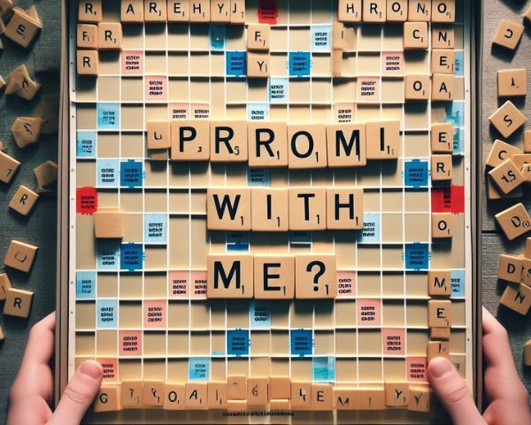 Using Scrabble tiles to spell out your promposal message is a clever and interactive way to ask your crush to prom. By arranging the tiles to form your message, you engage your crush in an interesting and playful game that adds a unique twist to the traditional promposal, making it memorable and unique. This can be one of the funniest and most cute promposals.
