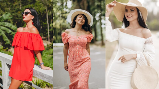 A bold statement can be made with unique off-the-shoulder tops and dresses if you seek feminine style. Gives off a sophisticated, flirtatious, and lively vibe.